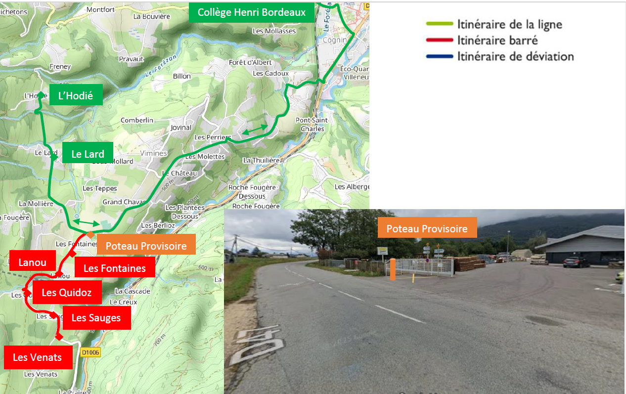 Les montées et descentes sont reportées au poteau provisoire situé devant l’entreprise VRD Services, le matin et le soir.